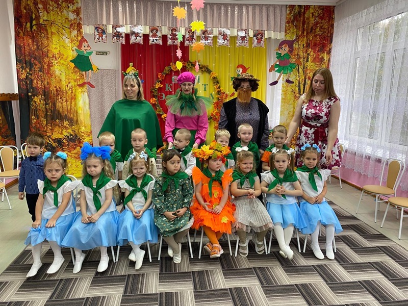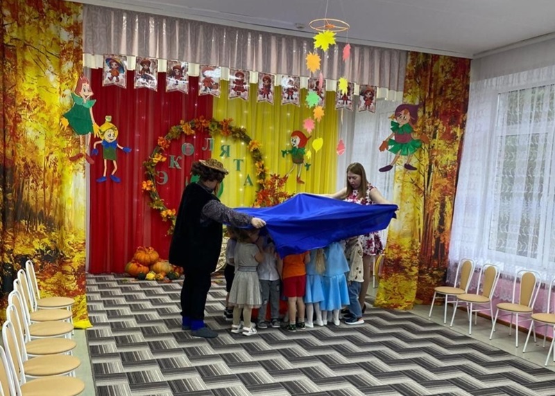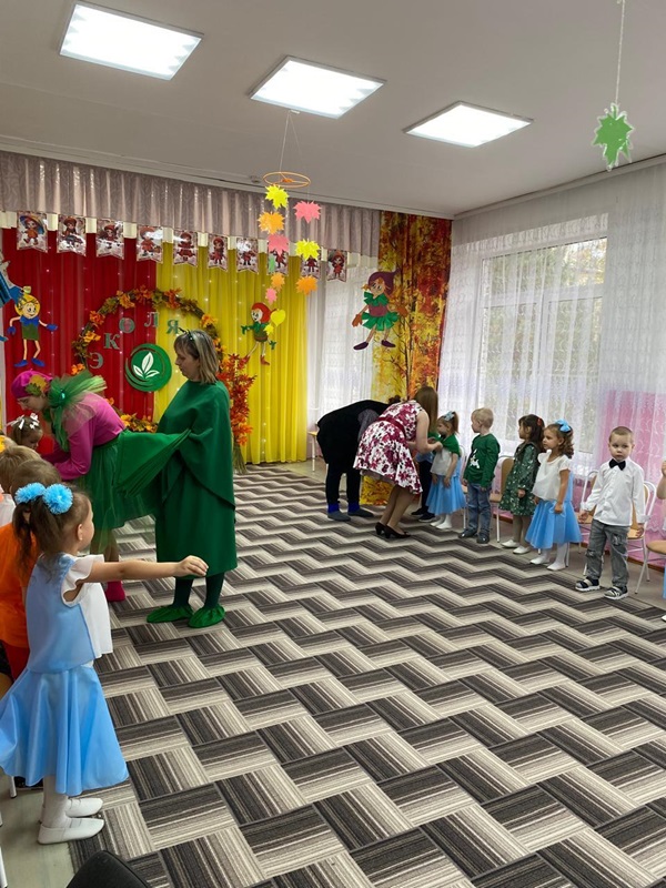 Вместе с Царицей Природой в гости к детям пришли сказочные персонажи «Эколята» — друзья и защитники Природы, которые родились в лесу и знают про него все: Тихоня и Елочка. Под музыку «Земля полна чудес» ребята отправились в путешествие в осенний лес. Во время похода ребята узнали, чем опасен мусор в лесу, убирали его, знакомились с правилами поведения в лесу. Дети отгадывали загадки сказочных героев, играли в словесную игру «Если я приду в лесок», исполняли добрые песни о природе, танцевали весёлые танцы, читали стихи.