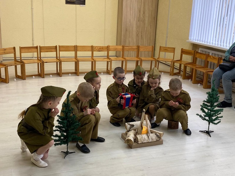 Наши воспитанники поздравили ветеранов с предстоящим праздником — Днем Победы и показали для них музыкальную программу, в ходе которой ребята спели , прочитали стихи, продемонстрировали групповые и парные танцы, а также сыграли на ложках и детских бубнах знаменитые фронтовые и строевые песни, такие, как «Катюша» и «Три танкиста».